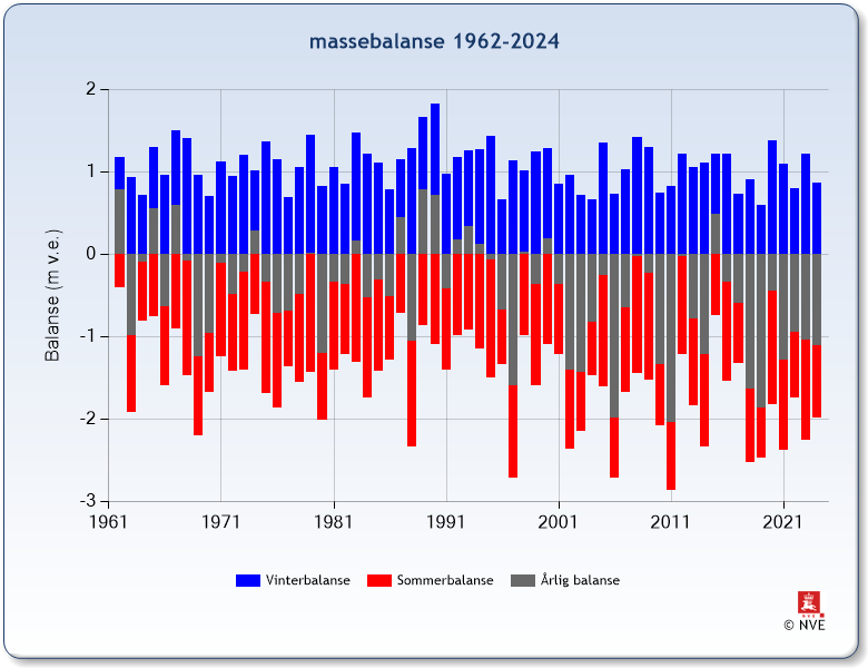 År Vinter- balanse (m.v.e.) Sommer- balanse (m.v.e.) Årlig balanse (m.v.e.)